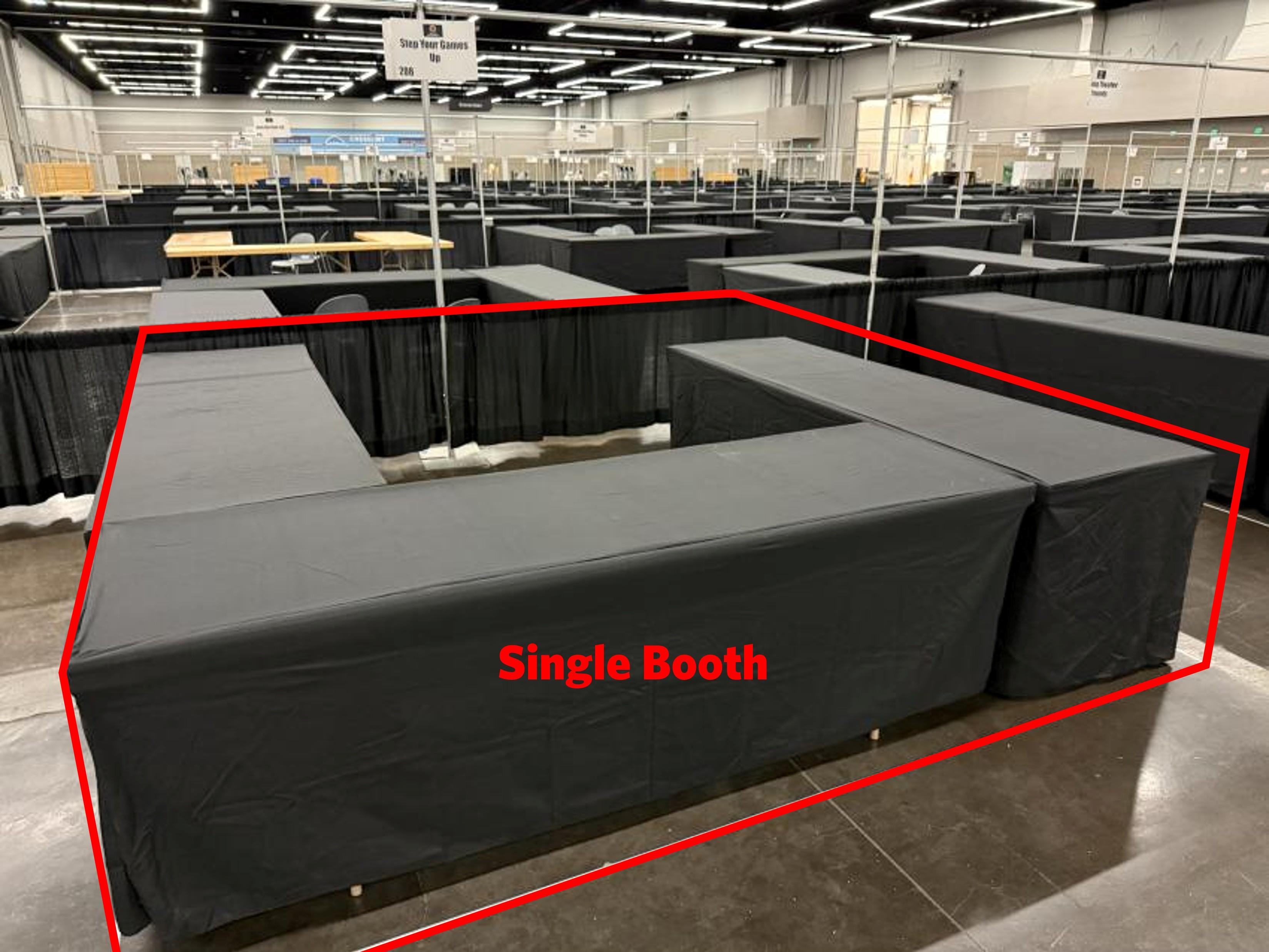 Typical Single Booth with three tables and up to 2 chairs (your choice).