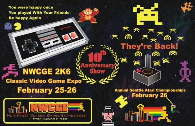 In parallel to the Atari Championships, Lee Krueger had thought about organizing a gathering of Atari 2600 fans and on May 26, 1997 he posted a message in the Usenet rec.games.video.classic in which he and (later) Paul announced a Northwest Classic Gamers Enthusiasts (NWCGE) meeting on Saturday, June 21, 1997 at the Centerplex building, 6000 & 6100 Southcenter Boulevard in Tukwila. The event drew around 20 attendees with people coming from as far away as Salem, Eugene and Spokane and playing games, competing and trading, buying and selling classic games.
